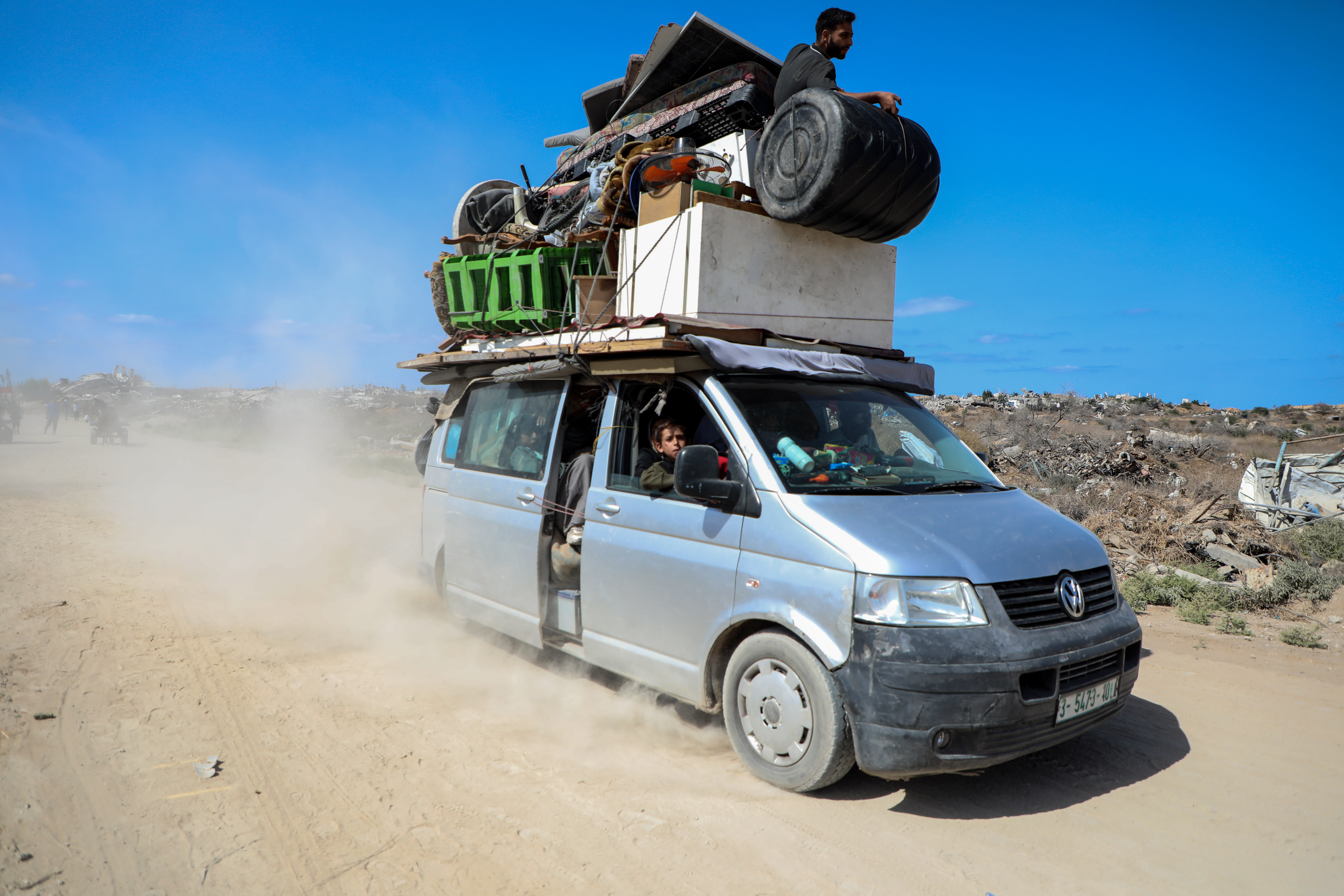 10月11日,加沙地带南部的巴勒斯坦人经由以军指定通道萨拉赫丁公路返回北方。 新华社发(里泽克·阿卜杜勒贾瓦德 摄)